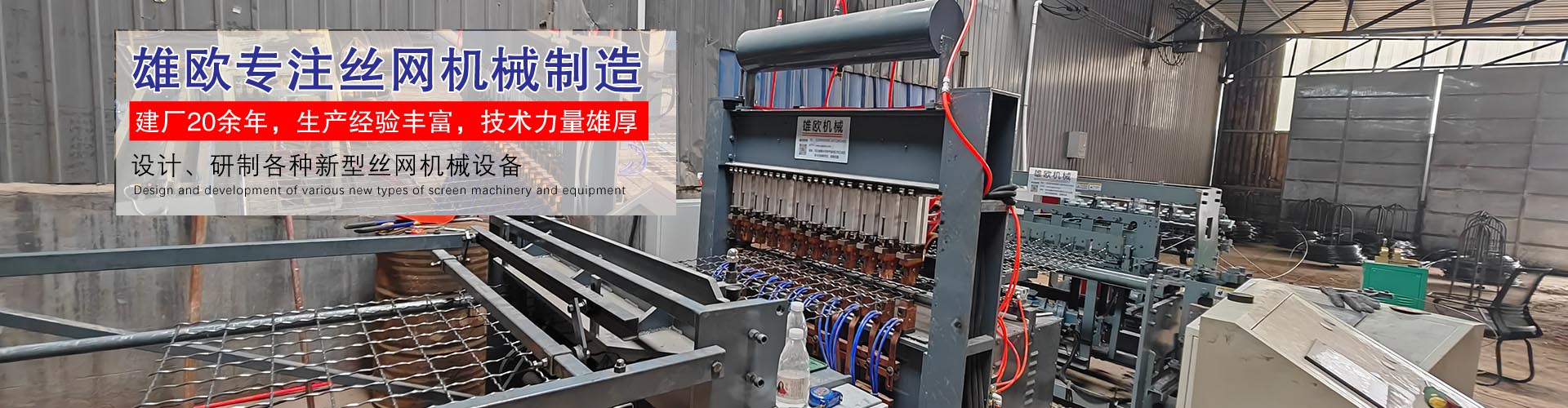 安平縣雄歐絲網(wǎng)機(jī)械有限公司位于著名的“絲網(wǎng)之鄉(xiāng)”---河北省安平縣,專(zhuān)業(yè)從事設(shè)計(jì)、研制各種新型絲網(wǎng)機(jī)械設(shè)備和生產(chǎn)各種絲網(wǎng)。雄歐網(wǎng)業(yè)機(jī)械研發(fā)絲網(wǎng)機(jī)械已有20余年,憑借專(zhuān)業(yè)的制作水準(zhǔn)與完善的售后服務(wù),深受廣大客戶(hù)的贊同和信賴(lài)。雄歐網(wǎng)業(yè)機(jī)械主要產(chǎn)品有:數(shù)控半自動(dòng)勾花機(jī)械、數(shù)控全自動(dòng)勾花機(jī)械、數(shù)控保溫網(wǎng)機(jī)械、數(shù)控食品網(wǎng)機(jī)械、全自動(dòng)經(jīng)緯網(wǎng)機(jī)械、直絲機(jī)機(jī)械、數(shù)控全自動(dòng)網(wǎng)片焊接機(jī)械、汽車(chē)坐墊網(wǎng)機(jī)械等機(jī)械類(lèi)產(chǎn)品,同時(shí)還有金屬網(wǎng)帶、裝飾網(wǎng)、涂塑絲、勾花網(wǎng)、支護(hù)網(wǎng)片、金屬線(xiàn)材、煤礦支護(hù)網(wǎng)、體育場(chǎng)用網(wǎng)、邊坡防護(hù)網(wǎng)等絲網(wǎng)產(chǎn)品。產(chǎn)品用途廣泛、規(guī)格齊全。以?xún)?yōu)良的質(zhì)量和貼心的服務(wù)贏(yíng)得了廣大客戶(hù)的好評(píng) ...
